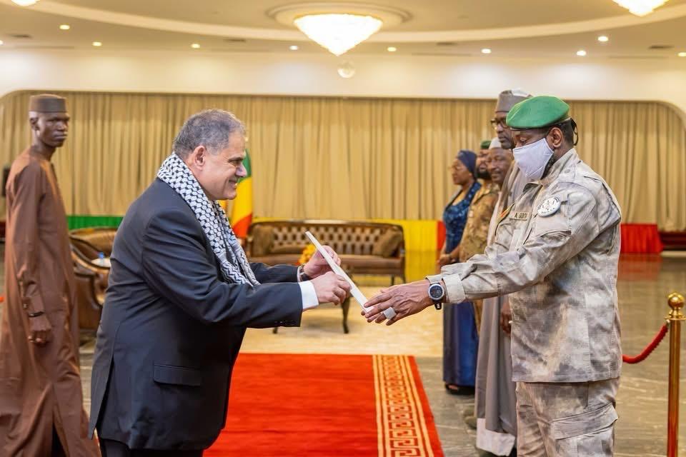 السفير حسان بلعاوي يقدم نسخة من أوراق اعتماده كسفير مفوض فوق العادة لدولة فلسطين لدى مالي