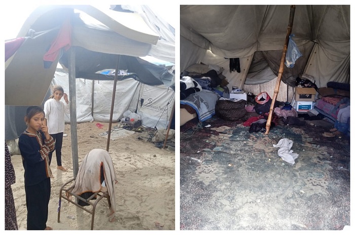 بدوره، أوضح النازح محمد النجار، مندوب "مخيم فلسطين" في مواصي خان يونس، أن أكثر من 100 خيمة غمرتها المياه منها المهترئة ومنها بسبب وجودها في مناطق منخفضة، منوها إلى أن المخيم الذي يحتوي على ما يقارب 600 خيمة نصفها يحتاج للاستبدال بسبب تمزقها وانتهاء عمرها الافتراضي لأنها مصنوعة من القماش.
