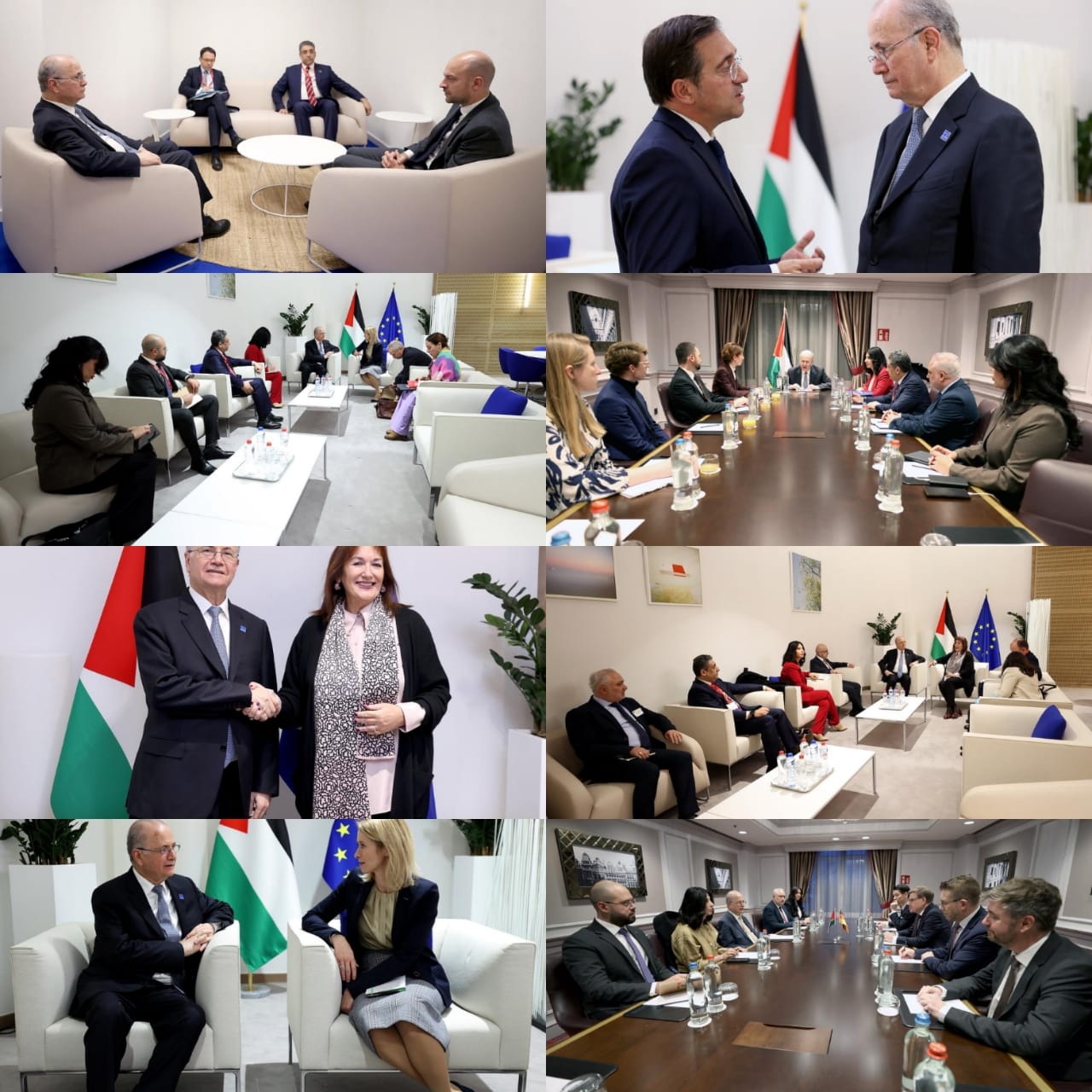 بحث رئيس الوزراء محمد مصطفى، على هامش اجتماع المانحين لفلسطين في العاصمة البلجيكية بروكسل، مع عدد من وزراء الخارجية والمسؤولين الأوروبيين جهود تثبيت وقف إطلاق النار في قطاع غزة، مؤكدا أهمية تكثيف الجهود الدولية لإدخال المساعدات ومستلزمات الإغاثة إلى القطاع دون قيود. كما شدد مصطفى على ضرورة الضغط على إسرائيل لوقف عدوان جيش الاحتلال والمستوطنين في الضفة الغربية بما فيها القدس، والإفراج عن الأموال الفلسطينية المحتجزة.
