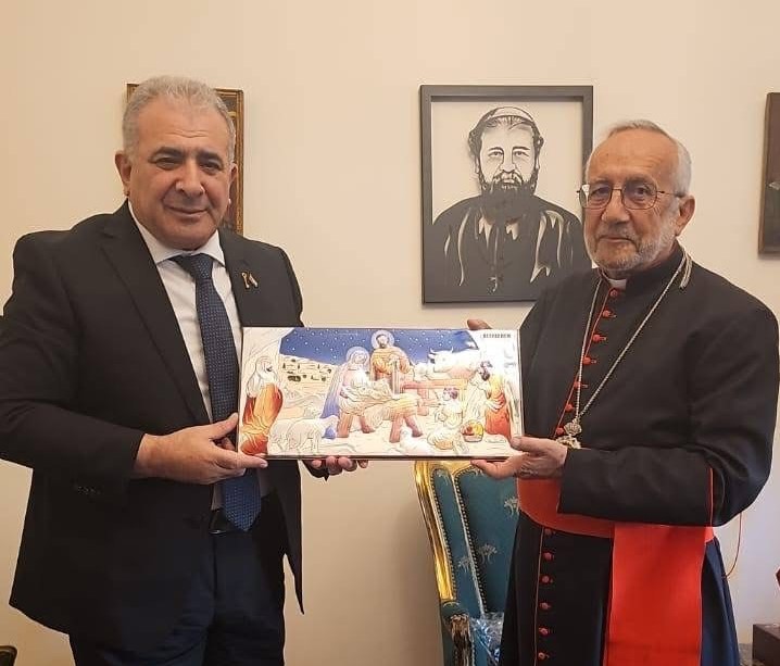 بدوره، تمنى البطريرك ميناسيان للسفير التوفيق في مهامه الجديدة، داعيا إلى احلال السلام على أرض السلام.