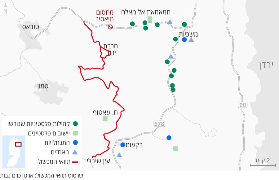 وخلال الشهر الماضي، أصدرت قوات الاحتلال الإسرائيلي 9 أوامر عسكرية، بوضع اليد على حوالي 1042 دونما من أراضي طوباس والأغوار، بهدف شق طريق استعمارية بطول 22 كم، بعدها نشرت خريطة لذلك الشارع من خلال تقرير نشر على صحيفة هآرتس العبرية، تبين خط سير الشارع والجدار المنوي إقامته.