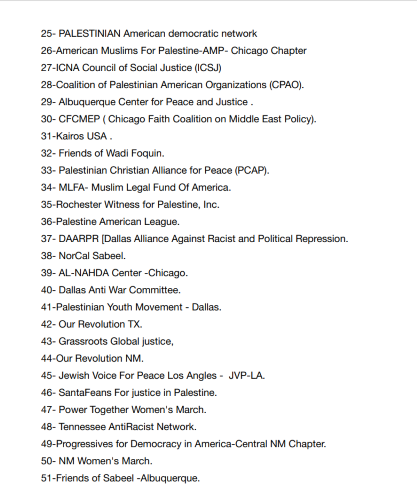 وقال أحد قيادات الجاليات الفلسطينية في الولايات المتحدة الأميركية مرجان أبو محمود، إن هذه الرسالة جزء من حملة منسقة تقودها المنظمات المتحالفة من أجل فلسطين، وتهدف للتواصل مع الحكومة الاميركية لحثها على اعادة العلاقات مع فلسطين، وايفاء الولايات المتحدة بالتزاماتها تجاه المساعدات التي تقدمها للاونروا لتمكينها من استمرار عملها، ودعم مستشفيات القدس الشرقية.