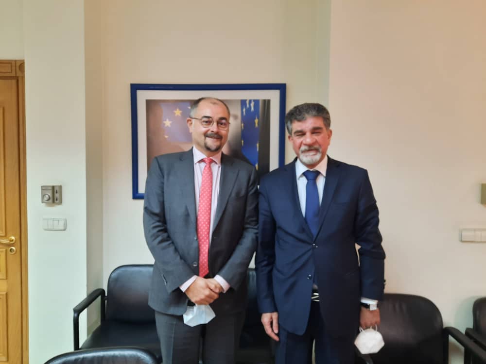 دمشق 12-4-2021 وفا- أطلع مدير عام الدائرة السياسية لمنظمة التحرير الفلسطينية السفير أنور عبد الهادي، اليوم الاثنين، القائم بأعمال بعثة الاتحاد الأوروبي إلى سوريا والمسؤول السياسي جيل بيرتران، على آخر المستجدات السياسية في فلسطين.
