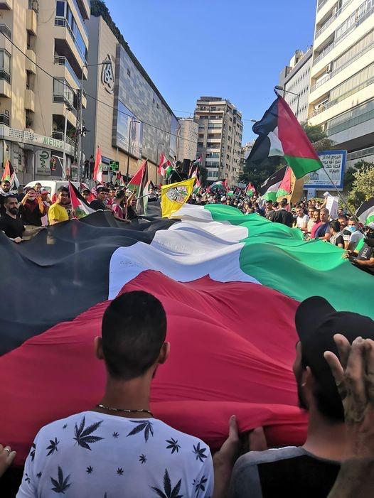 بيروت 18-5-2021 وفا- جابت مسيرة حاشدة اليوم الثلاثاء، شوارع العاصمة اللبنانية بيروت، تضامناً مع مدينة القدس وتنديدا بالعدوان على غزة وتأكيداً على الوقوف الى جانب شعبنا الفلسطيني.