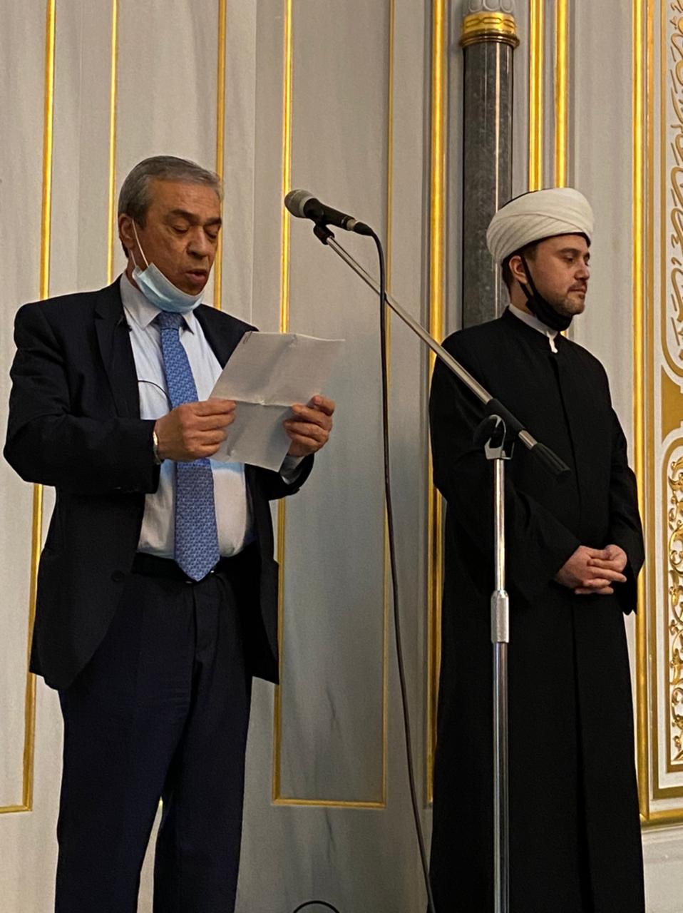 موسكو 21-5-2021 وفا- نظمت دار الافتاء في روسيا فعالية تضامنية لنصرة القدس والمسجد الأقصى المبارك في صلاة الجمعة، بحضور سفراء وممثلي دول عربية وإسلامية ونحو 15 ألف مصل.