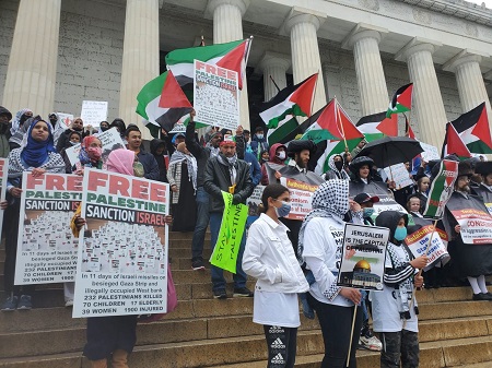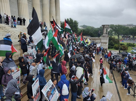 واشنطن 29-5-2021 وفا- انطلقت في العاصمة الأميركية واشنطن، مساء اليوم السبت، مظاهرة حاشدة دعت لها المؤسسات الفلسطينية والعربية والإسلامية العاملة في الساحة الأميركية من أمام نصب لينكون التذكاري وصولا إلى الساحة الطلة على البيت الأبيض، تنديدا بجرائم الاحتلال الإسرائيلي ضد شعبنا.