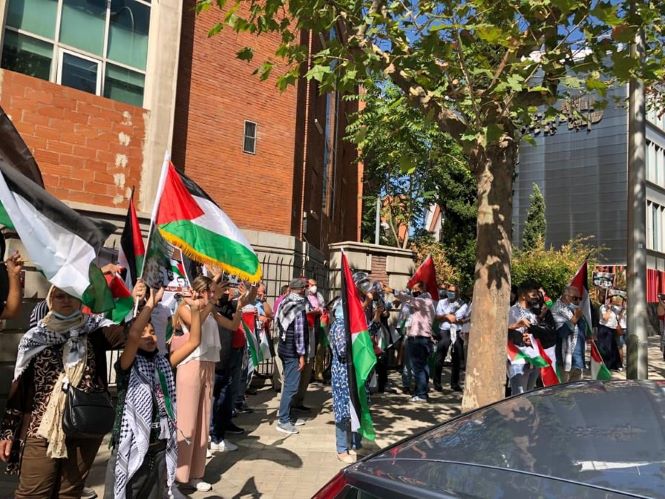 وطالب المتضامنون من أبناء الجاليات الفلسطينية والعربية والأصدقاء الإسبان المناصرين لقضيتنا، في بيان وزع خلال الوقفة التي نظمت أمام مقر السفارة الإسرائيلية، الحكومة الإسبانية والاتحاد الأوروبي، بالضغط على الاحتلال للإفراج الفوري عن الأسرى، خاصة الأطفال والنساء والمعتقلين الإداريين.