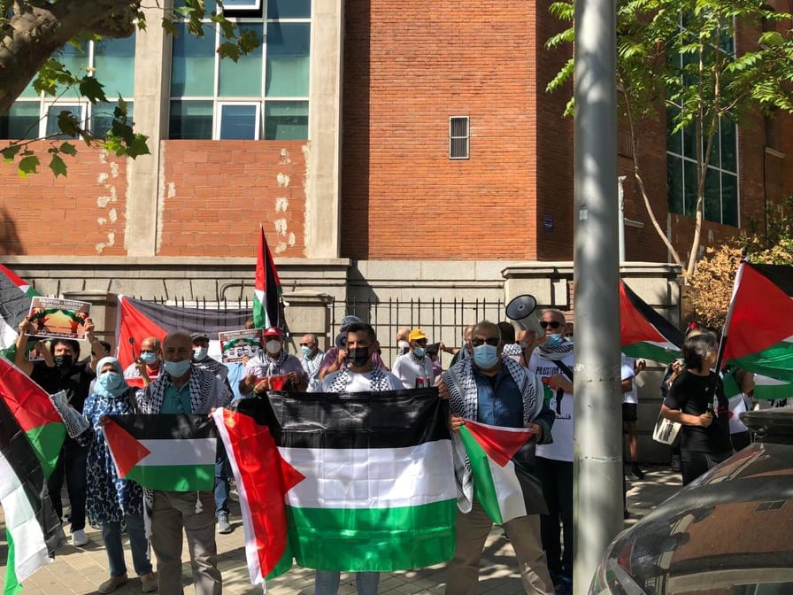 مدريد 18-9-2021 وفا- نظمت هيئة العمل الوطني الفلسطيني في العاصمة الإسبانية مدريد، اليوم السبت، وقفة تضامنية مع الأسرى في سجون الاحتلال الإسرائيلي.
