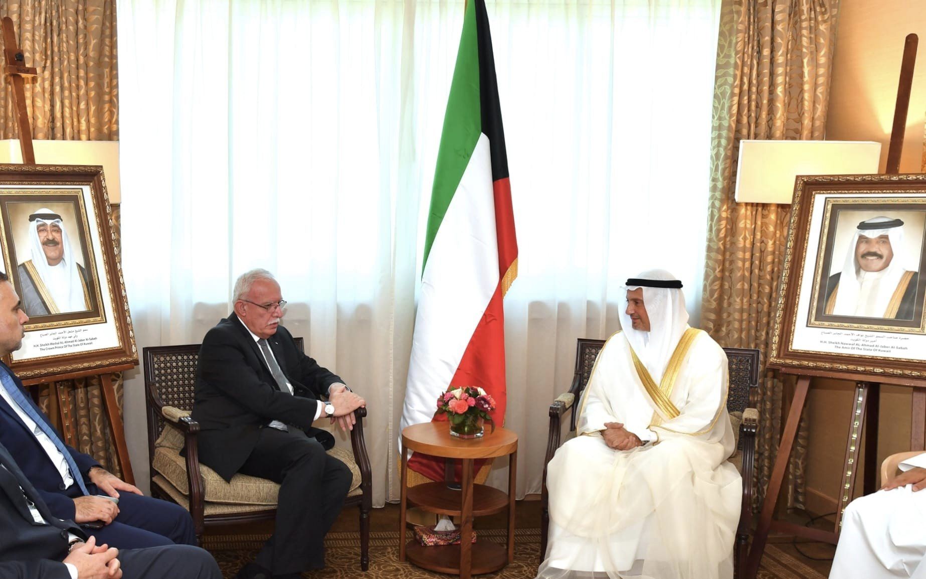 وقدم المالكي التهنئة للوزير الكويتي بمناسبة تعيينه وزيرا للخارجية بدولة الكويت، آملا له التوفيق في تولي مهام عمله، ولأواصر العلاقات الأخوية الراسخة بين فلسطين والكويت مزيدا من الترابط والنماء للشعبين الشقيقين.