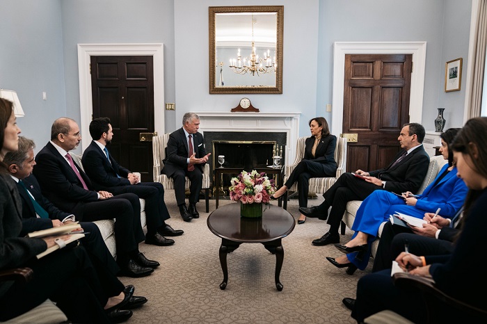وفي سياق متصل، أكد الملك عبد الله الثاني خلال لقاء مع نائب الرئيس الأميركي كامالا هاريس، أهمية تضافر الجهود للتهدئة وخفض التصعيد في الأراضي الفلسطينية والعمل مع المجتمع الدولي لبناء أفق سياسي لتحقيق السلام العادل والشامل، على أساس حل الدولتين.