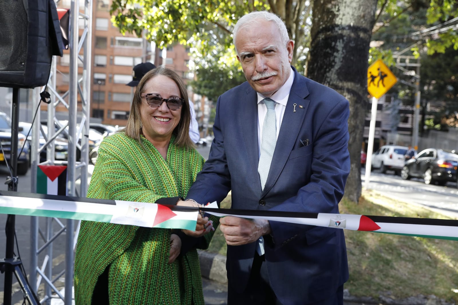 بوغوتا 14-9-2023 وفا- افتتح في العاصمة الكولومبية بوغوتا، شارع باسم دولة فلسطين، بحضور وزير الخارجية والمغتربين رياض المالكي، وعضو بلدية العاصمة انا تريسا بيرنال.