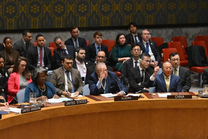 نيويورك 22-3-2024 وفا- استخدمت روسيا والصين حق النقض "الفيتو" على مشروع قرار أميركي في مجلس الأمن الدولي، بشأن غزة.
