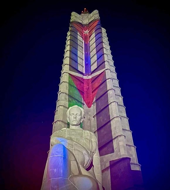 وأرفق الرئيس دياز كانيل منشوره بصورة تظهر إضاءة نصب "خوسيه مارتي" التذكاري (أحد أهم معالم العاصمة الكوبية هافانا) بألوان العلم الفلسطيني.