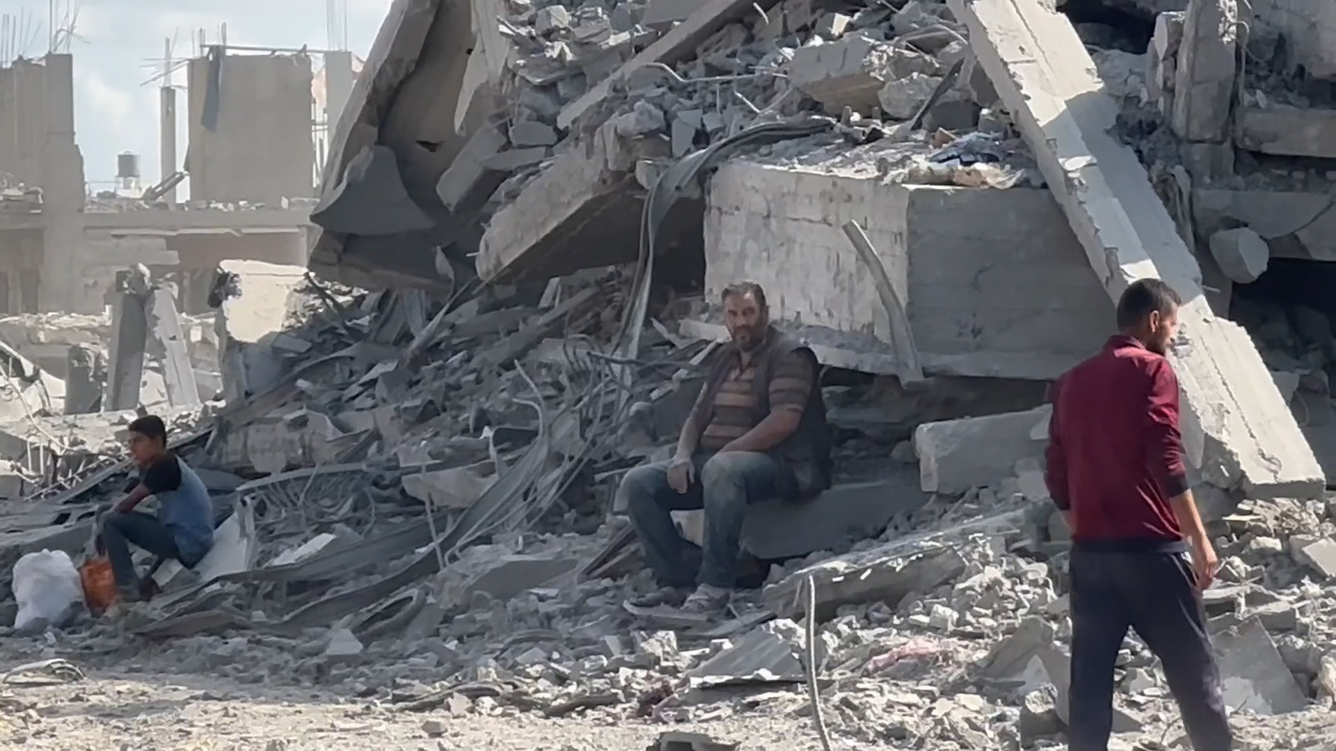 مواطنون يتفقدون منازلهم المدمرة في خان يونس