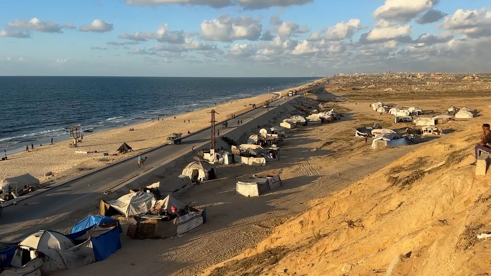 نازحون يقيمون خيامهم في وادي غزة قرب البحر