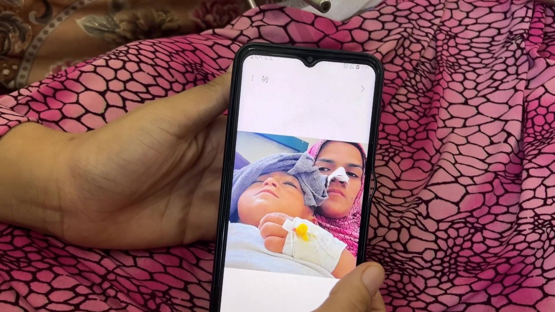 الطفل نافذ نصر يتلقى العلاج في مستشفى الأقصى بدير البلح جراء إصابته بسوء تغذية حاد
