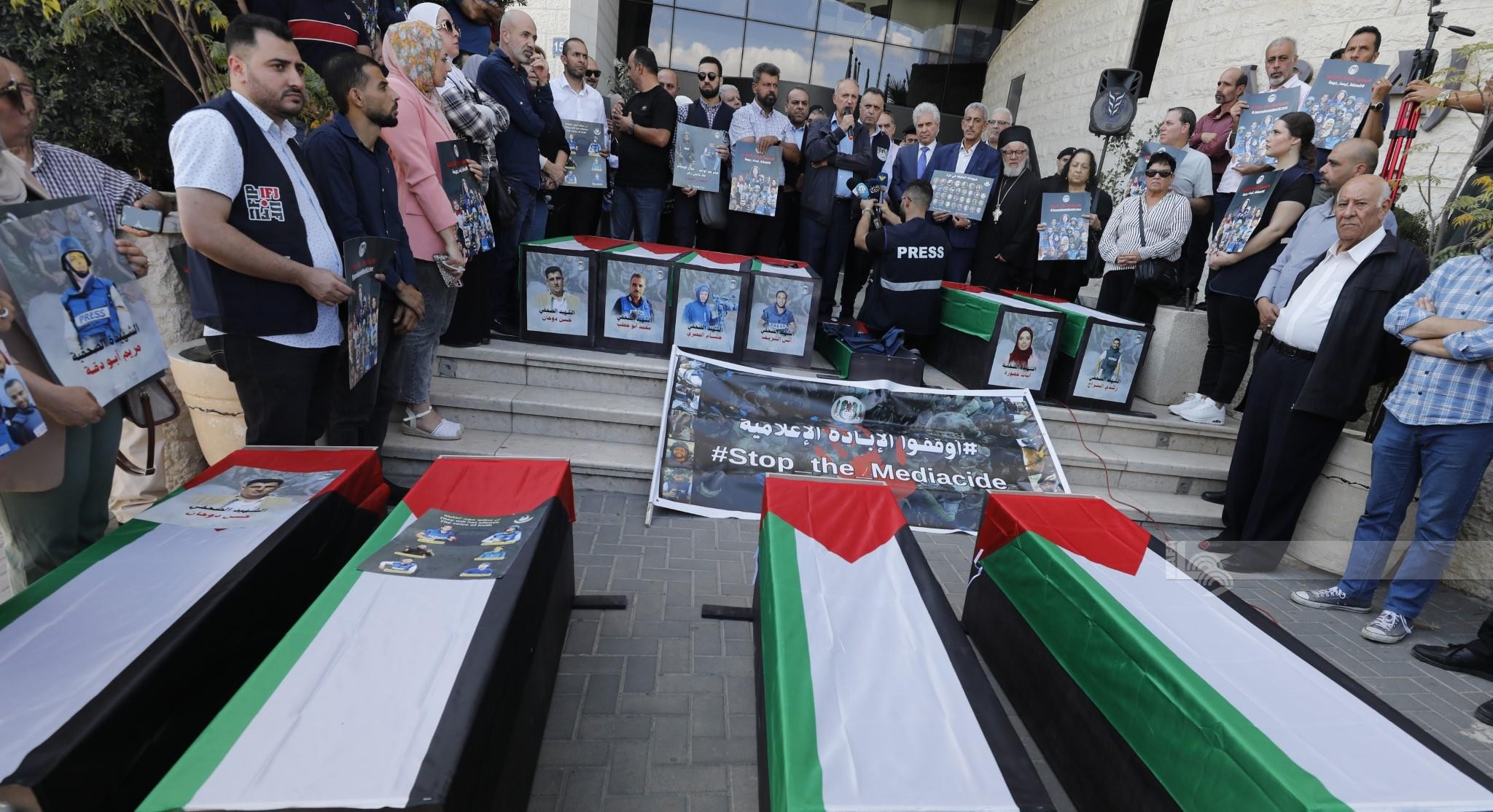 رام الله: وقفة للصحفيين في ذكرى الحرب على غزة