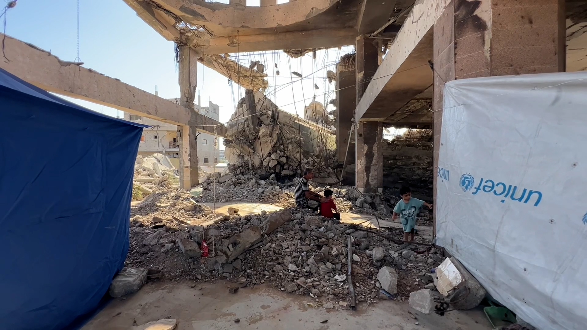 مسجد مدمّر في النصيرات يصبح مأوى للنازجين