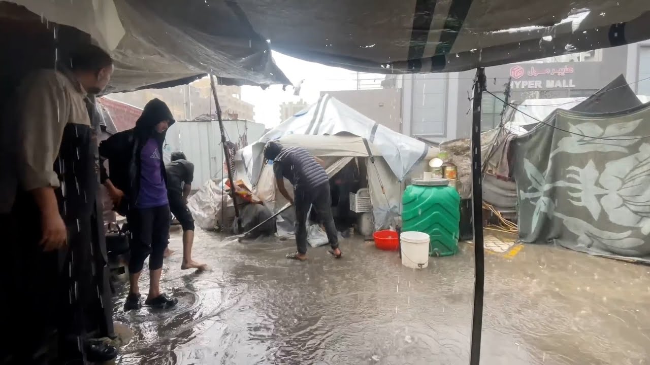 الأوضاع المعيشية للنازحين الفلسطينيين في غزة تزداد قسوة مع المنخفض الجوي