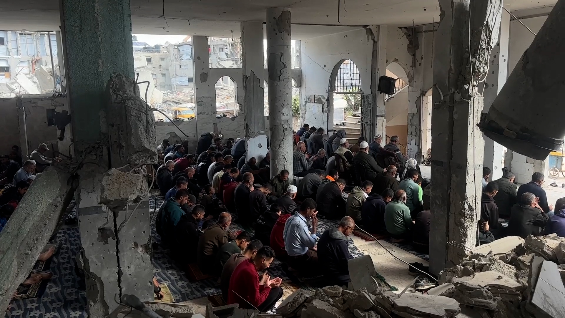 صلاة الجمعة على أنقاض مسجد مدمّر في غزة