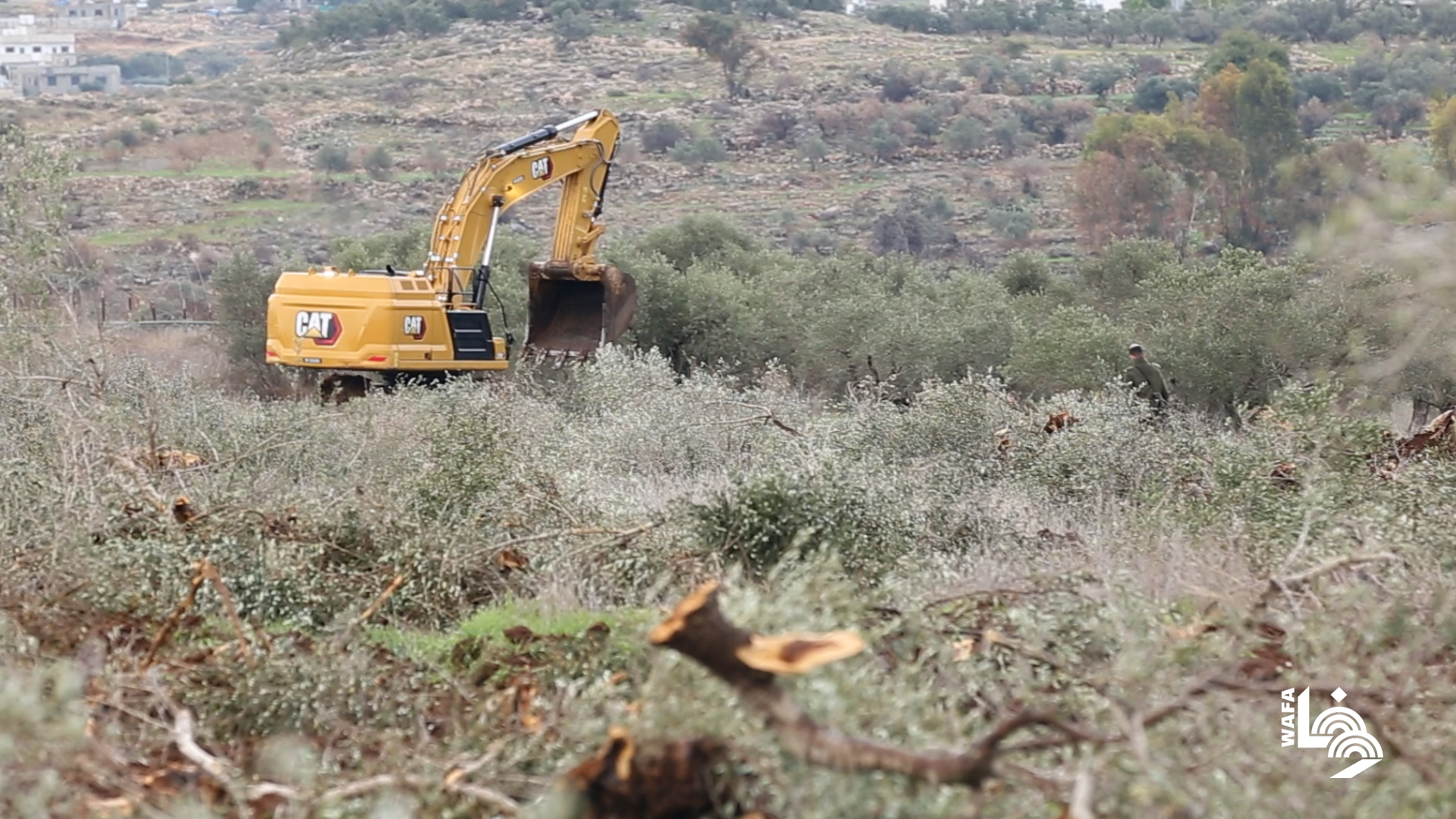 - الاحتلال يقتلع نحو 400 شجرة زيتون ويجرف 35 دونمًا من أراضي بدرس غرب رام الله
