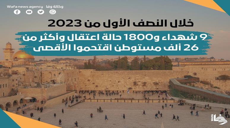 جرائم وانتهاكات الاحتلال خلال النصف الأول من العام الجاري 2023 في مدينة القدس