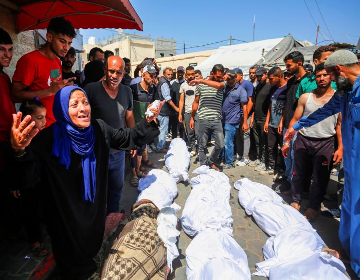 غزة 8-6-2024 وفا- استُشهد عشرات المواطنين، غالبيتهم من الأطفال والنساء، وأُصيب آخرون، اليوم السبت، جراء قصف الاحتلال المكثف، برا وبحرا وجوا، على المحافظة الوسطى وسط قطاع غزة، تحديدا مخيم النصيرات، الذي شهد عدوانا غير مسبوق، منذ أكثر من ساعتين.
