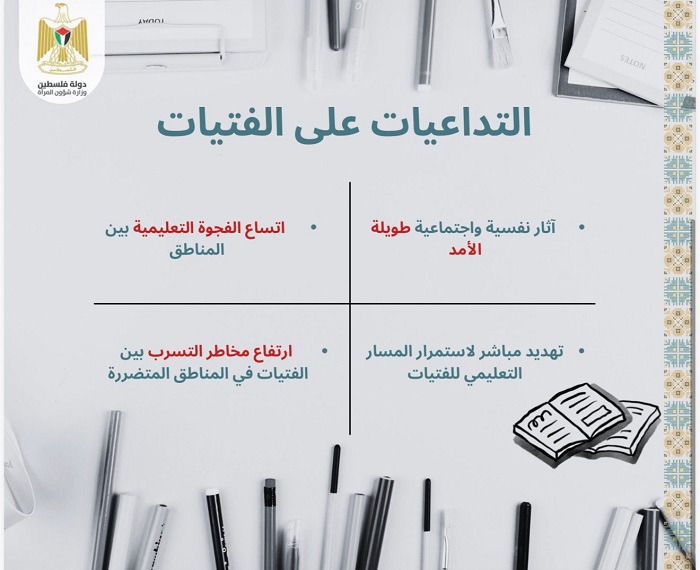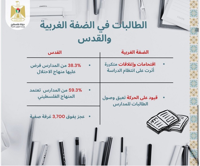 وأكدت وزيرة شؤون المرأة منى الخليلي أن "الحق في التعليم يشكّل ركيزة أساسية لصمود الفتيات الفلسطينيات وتمكينهن"، مشددة على أن الأرقام الواردة في الورقة تعكس حجم الاستهداف الممنهج الذي يتعرض له القطاع التعليمي، سواء من خلال التدمير المباشر للبنية التحتية في غزة، أو من خلال القيود والاقتحامات وسياسات الأسرلة المفروضة في القدس.