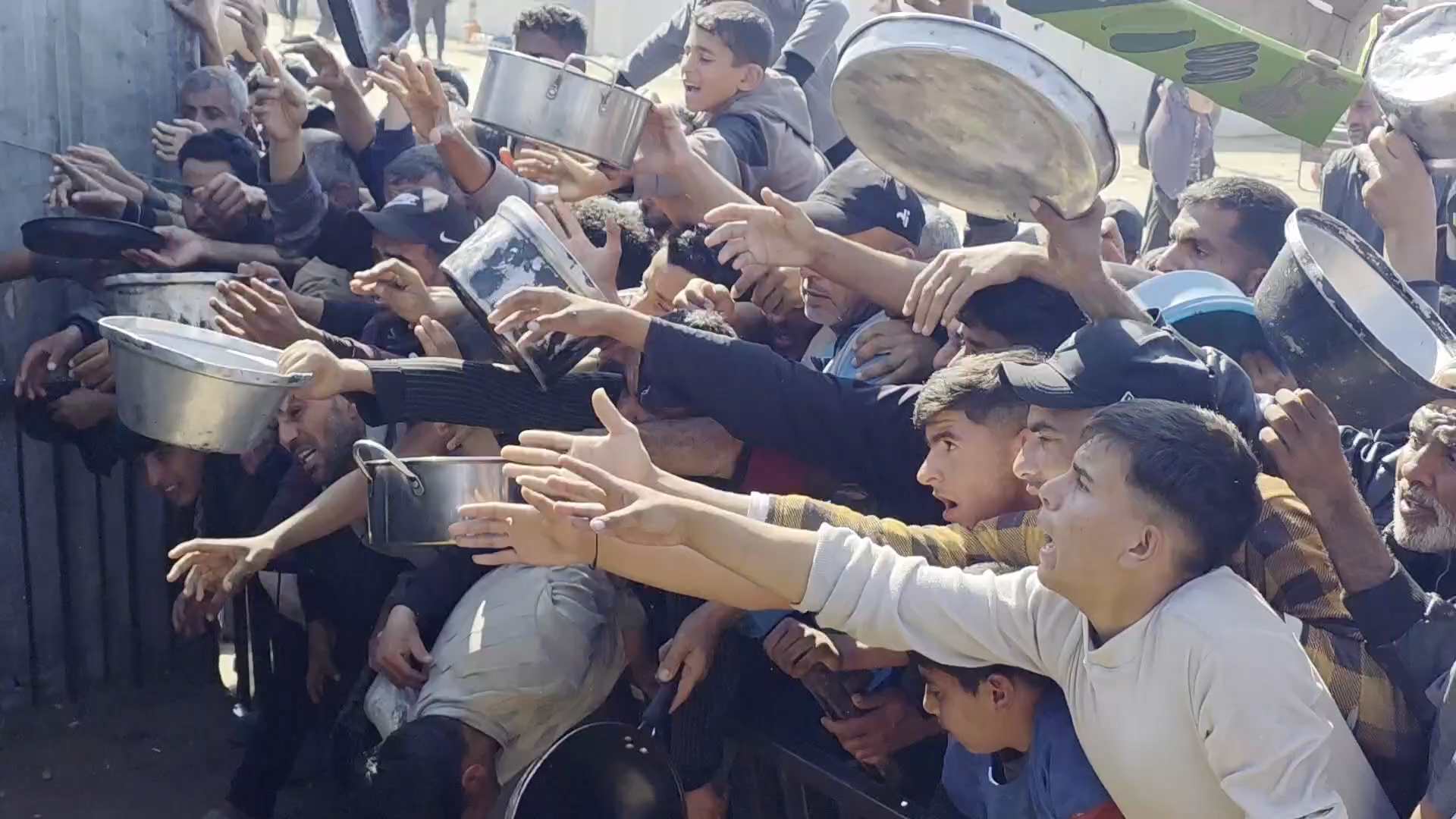 نازحون يتدافعون للحصول على طعام في خان يونس