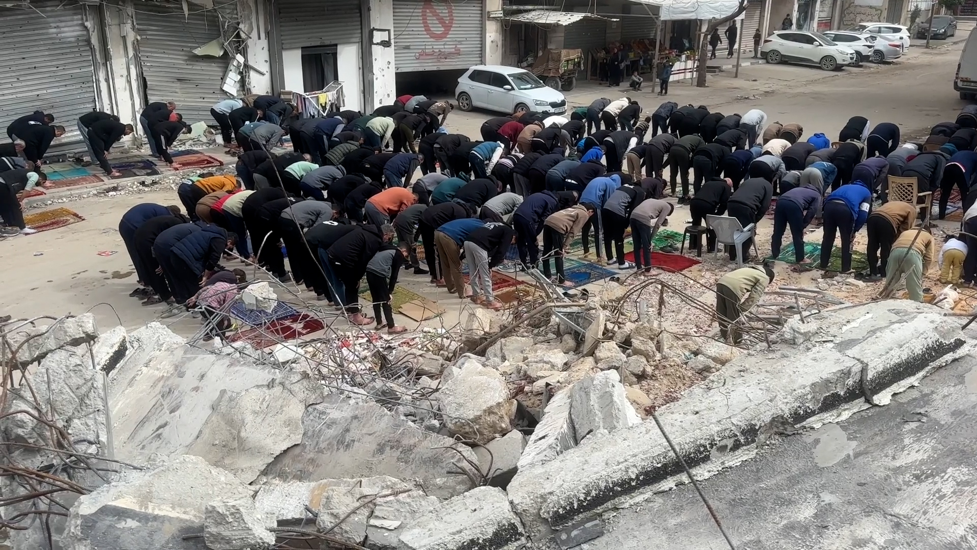 صلاة الجمعة على أنقاض مسجد مدمر في غزة