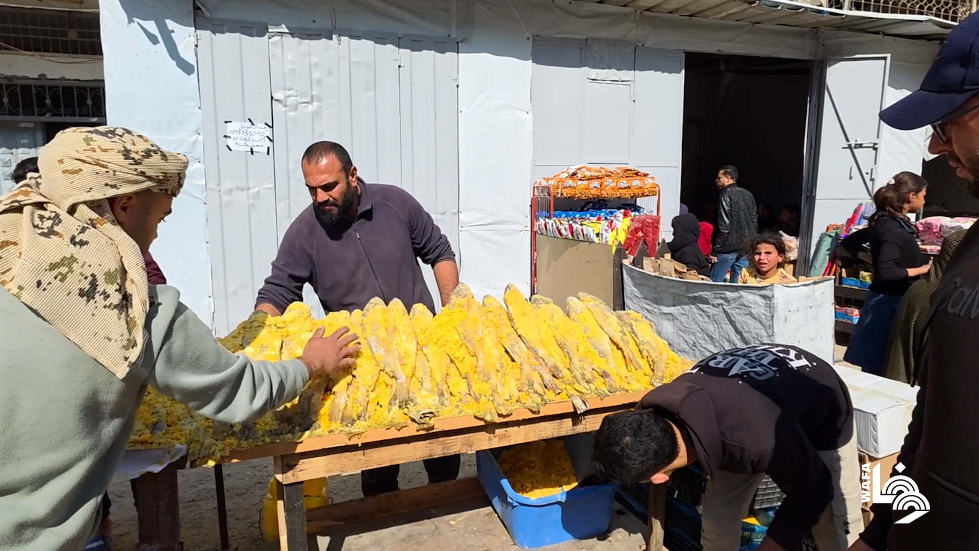 نازح يعود لمهنة تمليح الأسماك في خيمته بخان يونس