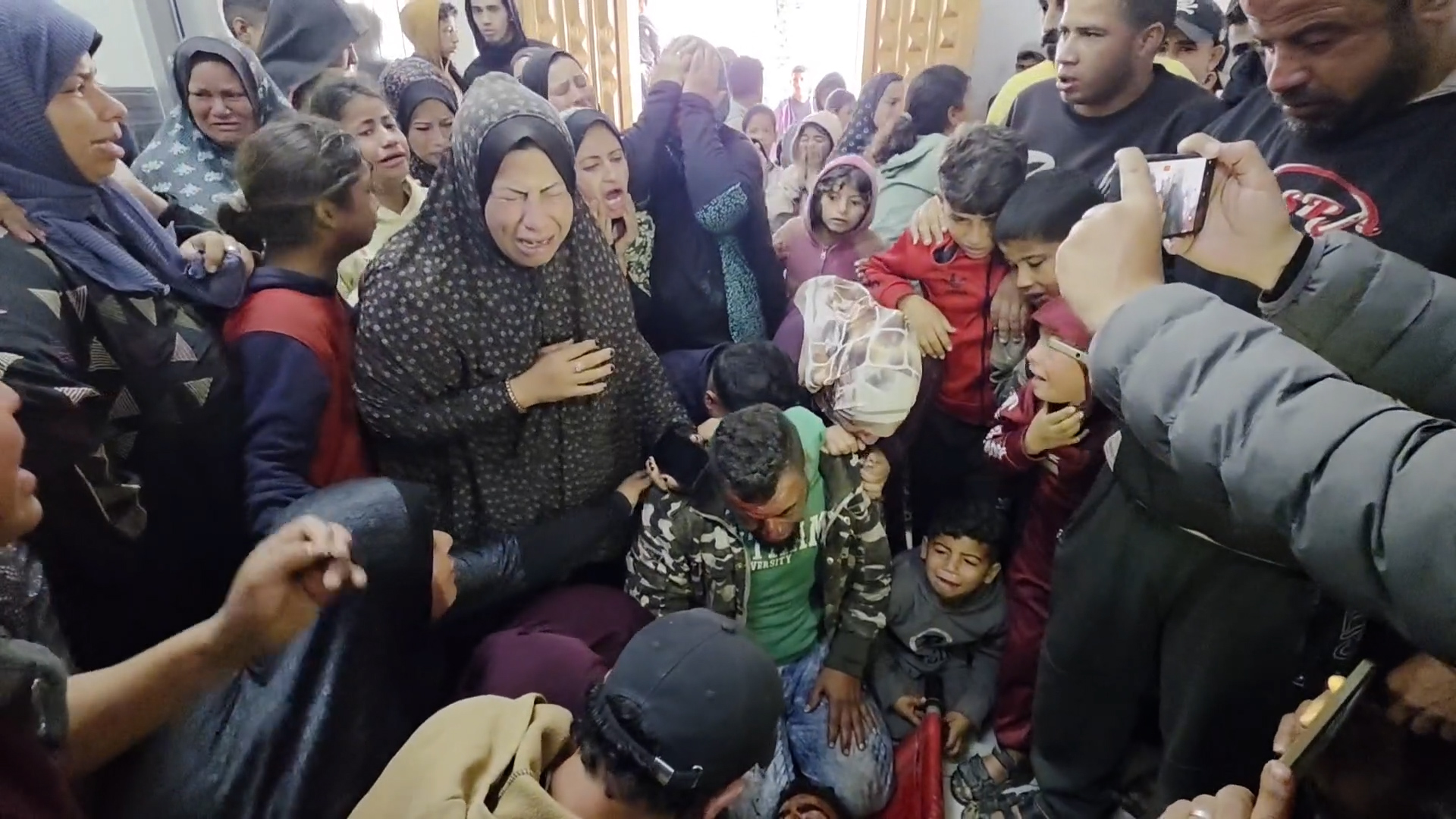 وداع وتشييع ستة شهداء ارتقوا جراء غارات إسرائيلية في خان يونس جنوب قطاع غزة