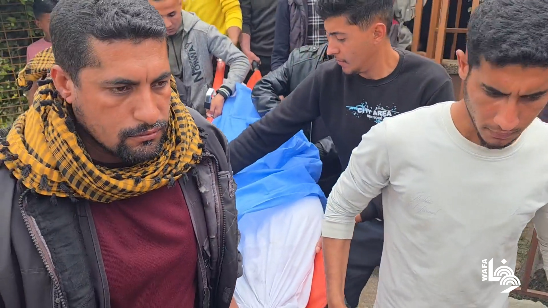 تشييع جثماني شهيدين ارتقيا بقصف إسرائيلي في حي الشيخ رضوان بمدينة غزة